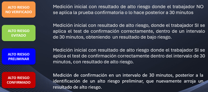 Se utiliza cuando hay una medición inicial de alto riesgo y el trabajador no realiza el test de confirmación o lo realiza después de los 30 minutos establecidos como ventana válida.